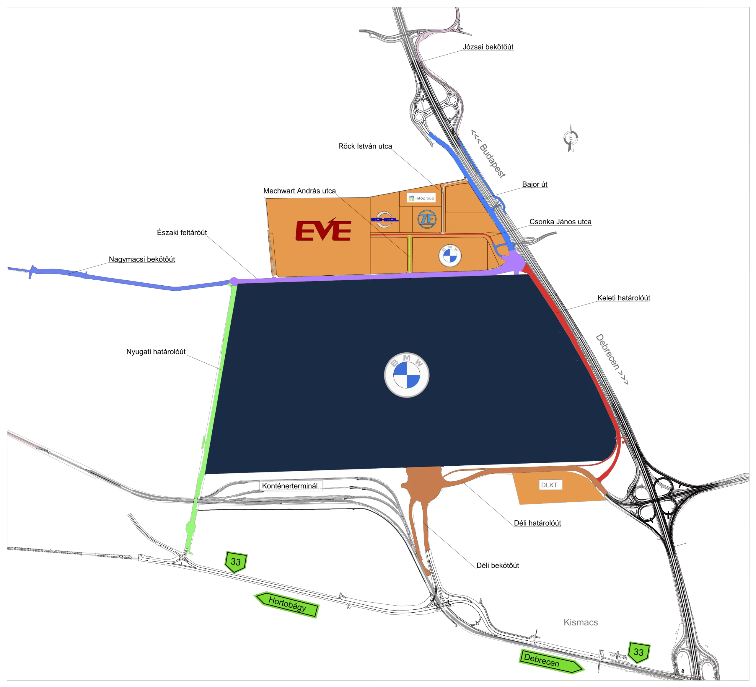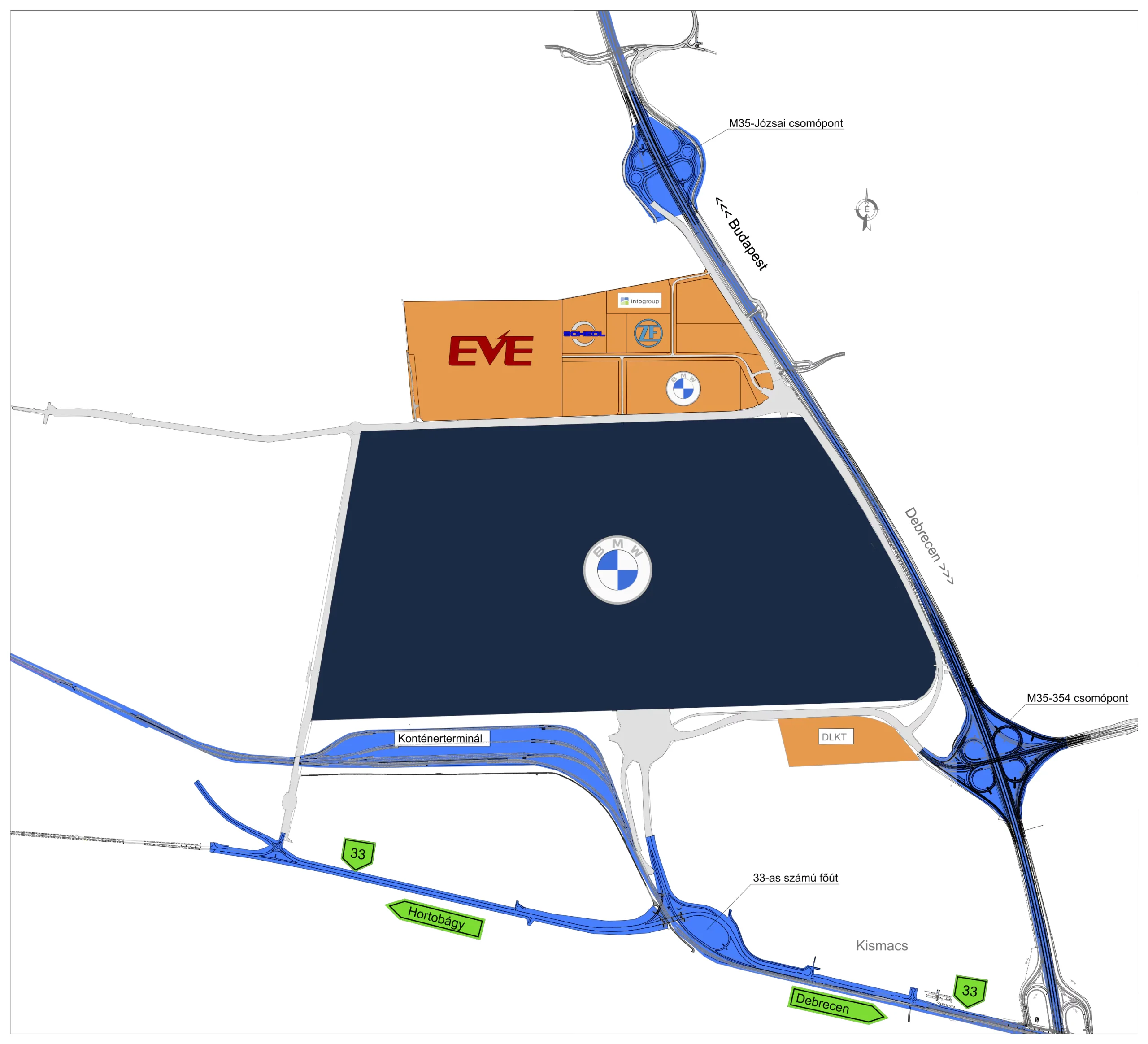 A teljes gazdasági övezet szennyvízelvezetésének biztosítására egy D315mm átmérőjű szennyvízvezeték került kialakításra, mely mezőgazdasági dűlőutakon haladva, keresztezve a 354 sz. főutat és az M35 autópályát éri el az ipari területet és azon belül csatlakozik a gazdasági övezeten belüli fő szennyvíz átemelőhöz, mely a BMW gyár déli telekhatáránál került elhelyezésre.